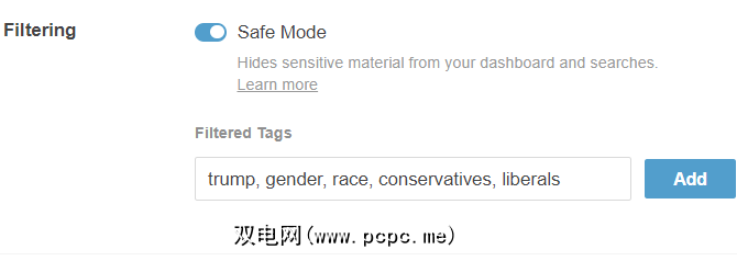 在这里您可以打开安全模式,该模式可让Tumblr选择并隐藏被视为“敏感材料"的帖子。