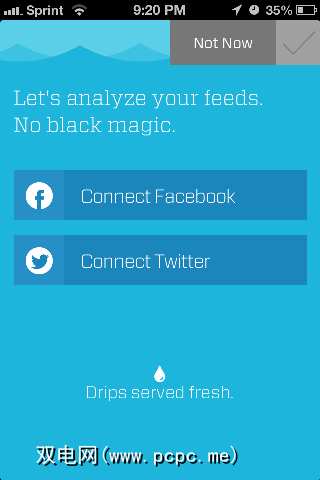 下一步,您需要关联Facebook或Twitter帐户。这当然是完全可选的。您还可以连接Tumblr,Instagram和App.net。不幸的是,不能选择连接Google +。