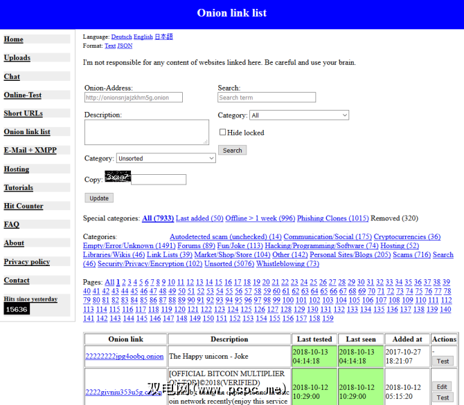 另一个使用“隐藏的Wiki"名称的网站,但它不是“官方"网站。但是,这是一个非常长的洋葱站点列表。不幸的是,很难验证其中有多少站点仍在运行。另外,此列表中也有很多站点我也不想验证,但是它确实描述了每个站点。