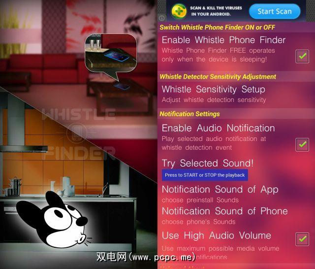 激活该应用程序并将其放在口袋里时,有些高频噪音会再次将其关闭,但这种情况很少发生,以至于您想禁用Whistle Phone Finder。