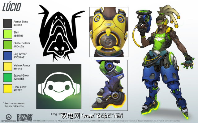 如果这还不够的话,它们还为每个可玩角色提供了高质量的概念图。 PlayOverwatch更进一步,为每个角色提供参考套件,详细描述角色设计,色板,特写细节等等。以下是Lucio参考套件的页面。