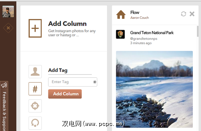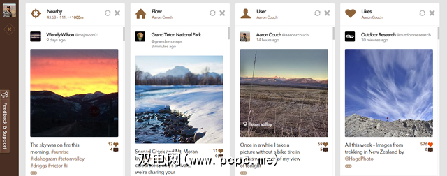 Instafall实际上是PCPC.me读者向我推荐的一项服务。它具有类似TweetDeck的设计,每个网站的“视图"都有专栏,大多数网站都将其专用于另一个页面。在Instafall上,没有“其他页面"。当然,您可以对帖子点赞和评论,查看特定用户的个人资料,以及添加用户,主题标签或“附近"照片的自定义列。