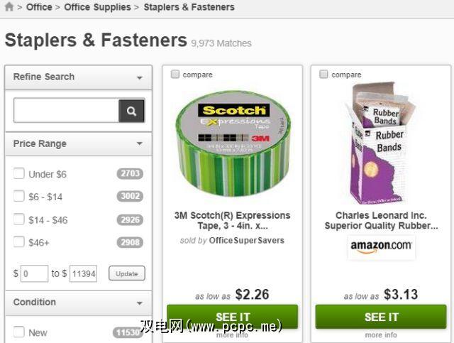 而Yahoo!可能不是那里最受欢迎的搜索引擎,它实际上为办公产品提供了一个绝佳的购物区;在Yahoo!的价格搜索网站上找到它。