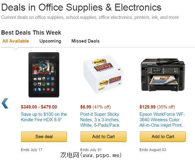 当然,如果将亚马逊排除在外,找到最便宜的办公用品的资源将是不完整的。亚马逊还在其办公用品和电子产品部分提供了交易部分。