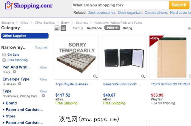 Shopping.com还有一个专门的“办公用品"部分。页面左侧有一个非常有用的导航/过滤器工具,可以准确地找到您要寻找的内容。