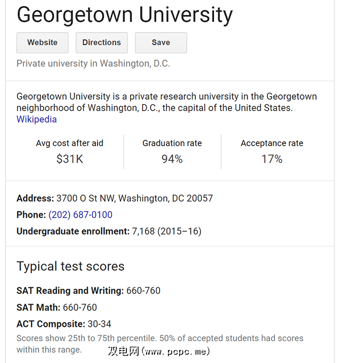 所有您需要做的就是搜索您选择的学校的名称, ,Google会为您提供在选择申请地点时可能要考虑的关键信息。