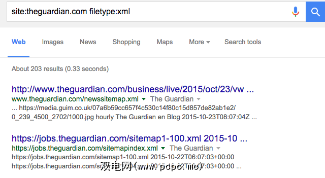 如果仍然找不到,请在Google中键入“ site:example.com文件类型:xml" 。这只会显示该域的.xml文件。查看是否可以找到站点地图。