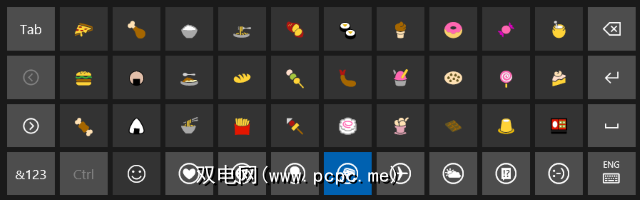 单击此新图标,键盘将出现在屏幕上。请注意,令人困惑的是,这实际上与可以在Settings中启用的屏幕键盘不同。在此键盘上,在空格和Ctrl旁边,您会看到一张笑脸。单击此按钮以访问表情符号选择。