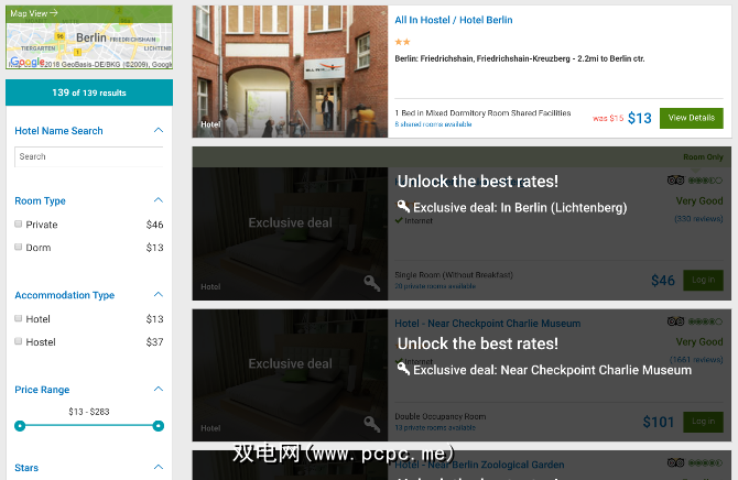 这是一个聚合网站,从Booking.com,Expedia,Hotwire,Priceline,HomeAway,Hostelworld,Hostelworld,VRBO和AirBnB。因此,您可以获得各种住宿选择,从宿舍中的床到漂亮的寄宿家庭。使用该网站就像其他任何网站一样简单,您只需添加旅行日期和目的地即可。您可以过滤结果以添加必要的功能并对列表进行排序。