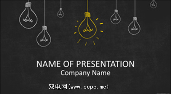这是另一种亮黑色的模板,除了更加极端之外,因为它是黑底白字。灯泡和黑板主题显然使其成为与教育相关的演讲的不错选择,但也可用于“思想研讨会"的背景。