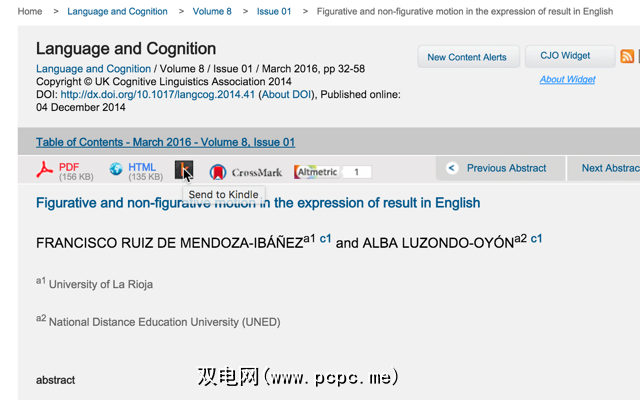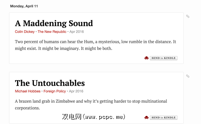 例如,将其推送到Kindle ,具有浏览器扩展程序,可让您通过单击按钮发送所需的任何内容。使用此服务在Kindle上获取文章时的外观如下: