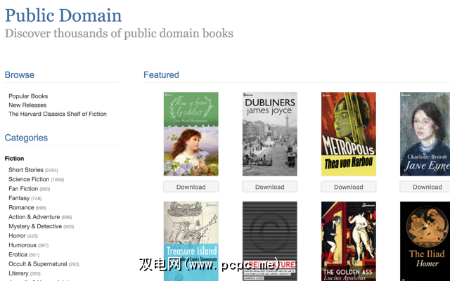 当然,有些网站上到处都是免费书籍。古腾堡计划(Project Gutenberg)托管了许多公共领域的作品,开放图书馆也是如此。 Feedbooks既有公共领域的书籍,又有免费的原始作品,您可以免费下载。