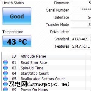 您可以在上方看到的另一个重要指标是驱动器温度,即摄氏43度(如果您喜欢华氏温度,CrysalDiskInfo也可以这样做)。就像MTBF一样,此信息可用于估计驱动器的运行状况:我搜索了该硬盘驱动器(WD20EARX)的规格,并在Western Digital网站上找到了它们。 WD为该驱动器指定了0到60摄氏度的工作温度,所以现在我知道我在这个范围内(尽管是高端)。