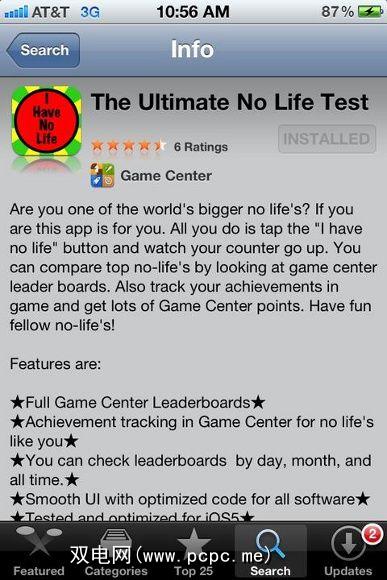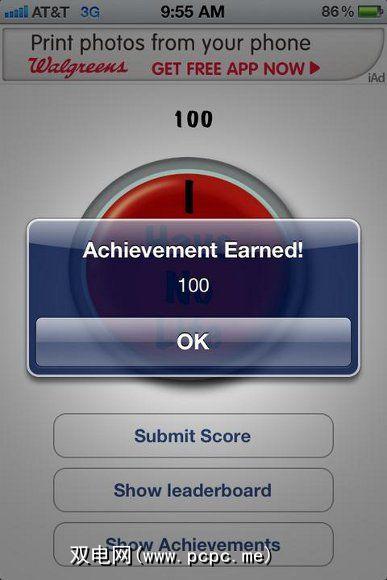 这东西是“补习主义者"和成就痴迷者的真正杀手(可以说他们拥有最少的生命)。最高级别的游戏中心成就要求您点击红色按钮一百万次。高达一百万次的生命周期还没有结束,哦,不,一旦关闭应用程序,计数器就会重置。归结为这个;如果您获得了这一成就,那么您肯定没有生命。