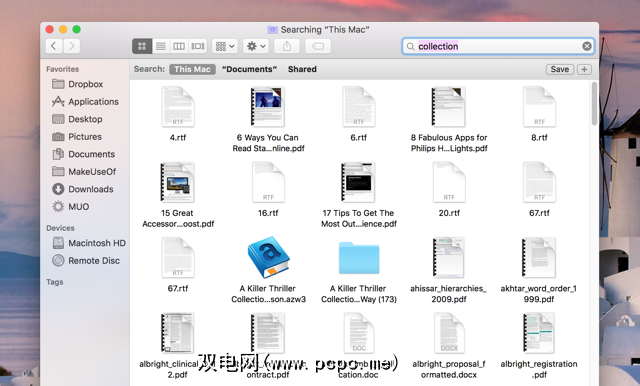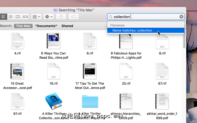 您将看到显示的结果列表,并希望您的文件是列出的第一个(尽管众所周知,它几乎肯定不会,因为那太容易了)。 Finder搜索文件名以及这些文件的内容以创建搜索结果。例如,在此搜索中,我正在寻找单词“ collection",但前11个结果的标题中没有“ collection",但是在文本中是