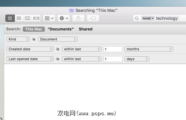 您可以创建一个包含计算机上所有音频文件的文件夹,或者创建一个存储过去四天内修改过的PDF。您可以根据需要进行具体设置:如果始终访问标题中包含“技术"一词,在过去一个月内创建并在过去一天内打开的文档对您很有用,则可以执行以下操作: