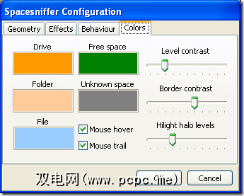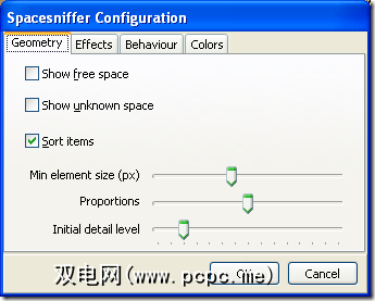 第一个选项卡表示是否应显示可用空间,显示未知空间,排序项以及元素的最小大小(这是最小的项) ,项目彼此之间的比例以及初始详细程度。随便看看它们,看看有什么用。
