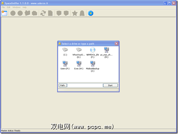 选择要分析的驱动器或嗅探丢失的硬盘空间。我选择了我的C:\驱动器。然后点击开始。这将开始操作,您将看到所选驱动器的移动表示,因为它将整理出驱动器上的内容。您将在运行时看到类似的内容:
