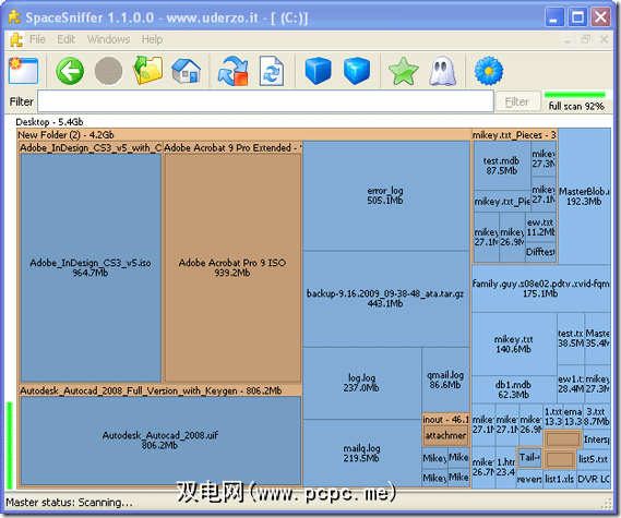 如果单击任何驱动器部分,则可以像这样“放大"(即使仍在扫描时)。我双击了占据5.4GB数据的桌面部分,然后看到了: