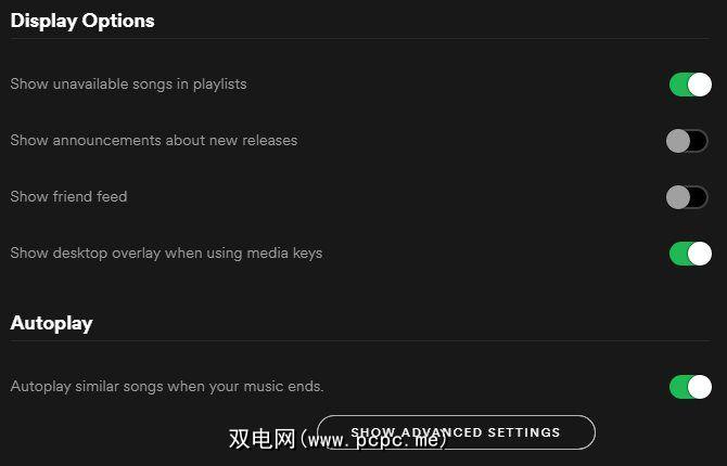 要确保已启用此功能,请转到桌面版Spotify上的>“编辑">“首选项" 。向下滚动到自动播放,并确保打开在音乐结束时自动播放类似歌曲。