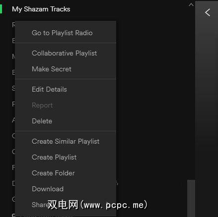 一个不太知名的Spotify提示就隐藏在播放列表侧边栏中。右键单击任何播放列表,您会看到一些可能已经知道的选项。其中包括公开播放列表,以便其他人可以欣赏它,下载以供离线收听和共享。