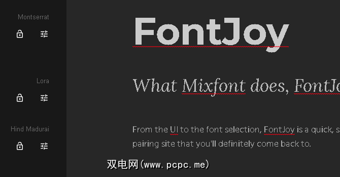 FontJoy可以简化Mixfont的工作。从UI到字体选择,FontJoy是一个快速,简单且有用的字体配对网站,您一定会一次又一次地访问它。简单,可编辑的用户界面。在文本上方,您将看到两个图标,一个 Generate 按钮和一个 slider 。