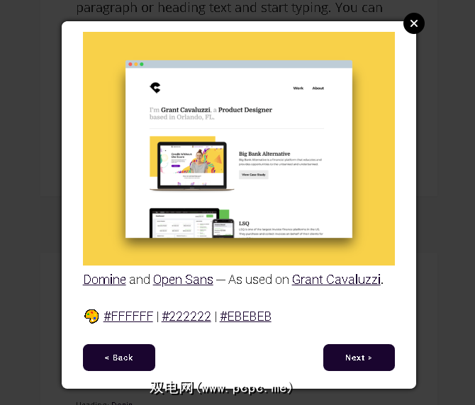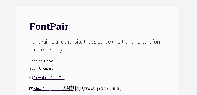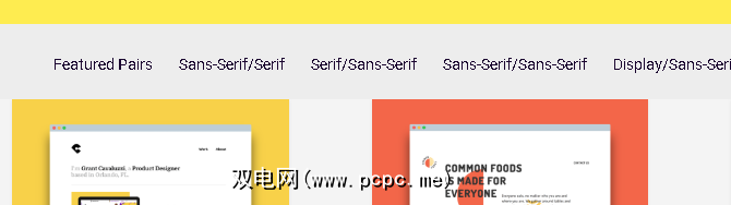 此外,在野外查看字体对选项将使用特定的字体对显示网站。这个例子。它不仅会标记字体配对,还将链接示例并注明网站的配色方案。
