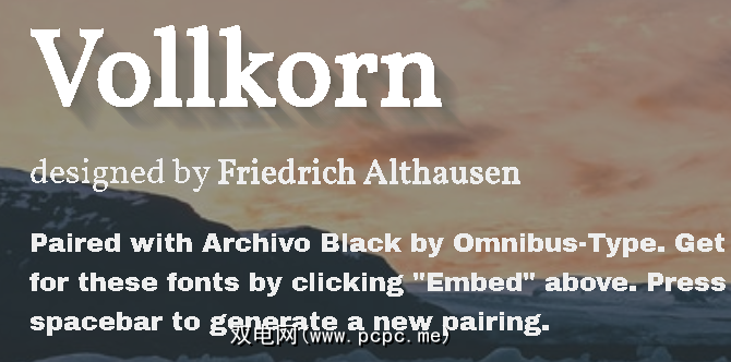 您将获得一个随机生成的字体配对。 Mixfont上的每个字体配对都会创建一个迷你网站来展示该配对。