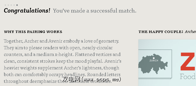 但是,如果选择正确的字体,不仅会得到字体名称。您还将获得有关字体为什么能很好地一起工作的详细说明,有关每种字体的信息以及这两种字体的绝佳示例。