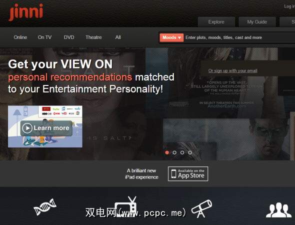 Jinni通过比较您的娱乐个性和目录中的所有标题,并根据自己的喜好和过滤条件来提出建议。<