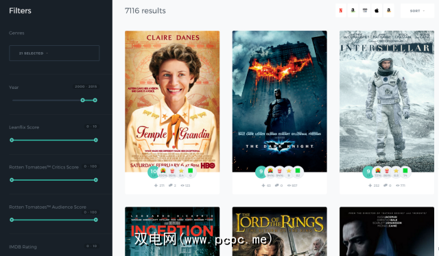 Leanflix是一个站点,您可以在其中过滤潜在的电影以根据特定要求观看。当您移动滑块组时,屏幕的右侧会自动更新,并提供有关观看内容的建议。