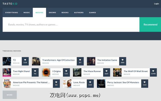 TasteKid有一个非常基本的前提。首先,在“推荐"框中输入您以前看过和喜欢的电影的名称。然后,您会根据最初输入的电影标题,得到一堆包含网站认为您想要的电影标题的图块。