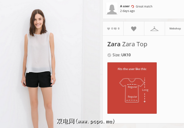 在每个商品照片的底部,您都可以看到尺寸指南以及您与提交指南的人的匹配程度。您还将看到有多少人喜欢它,以及其他用户对该商品的评论。如果您点击其他用户上传的商品,则会看到有关此人与您的身体相匹配程度如何以及该商品适合他们的程度的所有信息。基本上,您会获得尽可能多的信息,以了解它如何适合您。