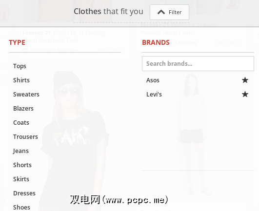 在浏览时,您可以过滤结果以仅显示您要寻找的衣物的类型。或者,您可以按进入衣橱的品牌来检查商品(这是增加添加更多不同品牌商品的诱因)。按您输入的品牌查看商品是获得合适尺寸的一种更有可能的方法,因此请不要忽略此功能。