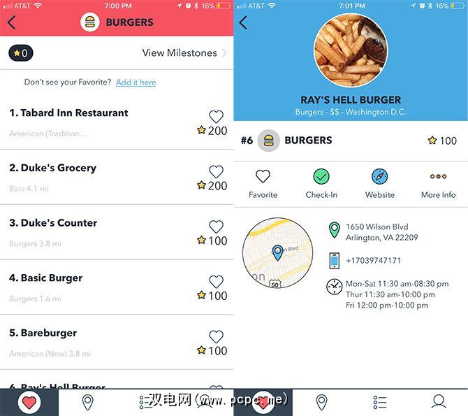 该应用程序依靠其用户来确定将列出哪些位置。每个口味用户只能为每个类别的自己喜欢的餐厅投一票。每次投票可获得100分,因此位置获得的投票越多,列表中出现的投票就越高。