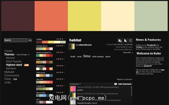 自2006年以来,网上一直免费提供最佳的工作工具。它的年代久远,需要Flash才能使用,但每天都有成千上万的活跃用户发表评论,收藏并贡献色彩。该工具称为Kuler,它可能是Adobe迄今为止发布的最好的免费产品。