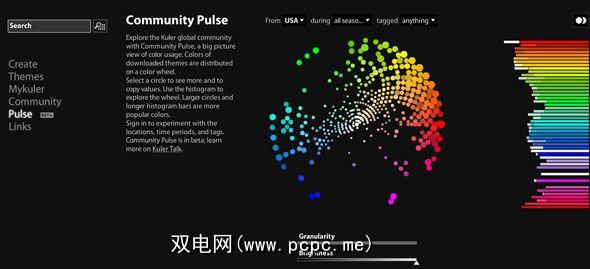 Pulse更高级,尽管它可以通过更新来提供有关Kuler服务的颜色使用的全局概述。