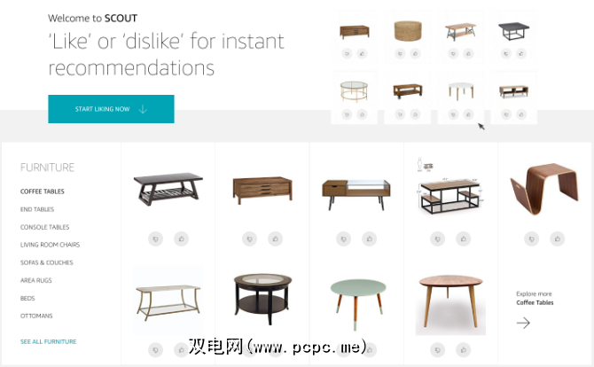 Amazon Scout(Web):由Amazon制造,用于基于建议在Likes