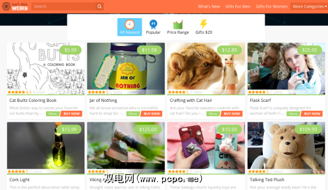 ITW还可以轻松浏览,以防您没有疯狂的关键字来搜索。寻找低于$ 20的礼物,最受欢迎的奇异物品或单独的男士/女士礼物。还有一些其他基于类别的列表。