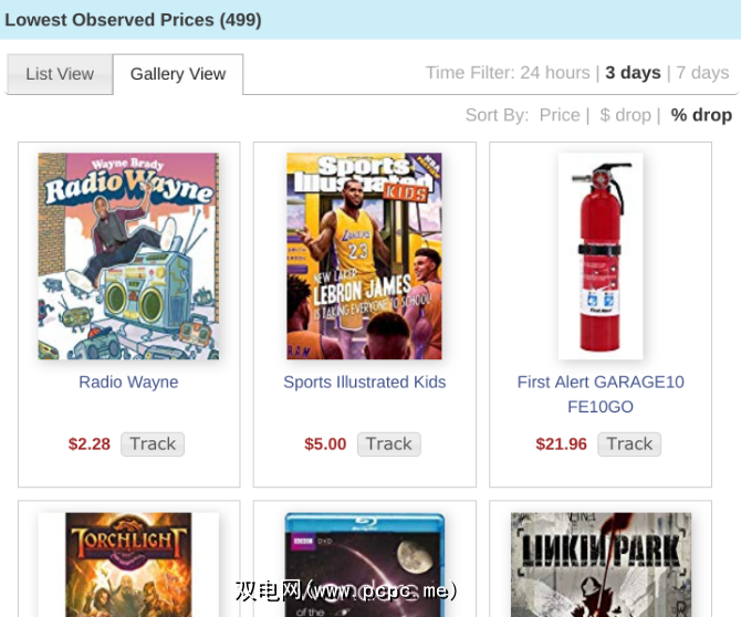 Lightning Drops会自动跟踪亚马逊上的每个商品,并且有一个出色的“最低观察价"部分。在这里,您可以查看哪些产品达到了历史最低价。产品根据过去24小时,过去3天或过去一周内发现的商品进行分类。