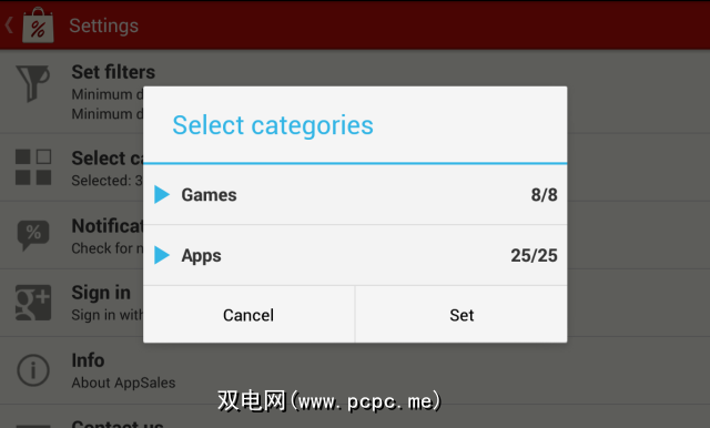 也许您只对在以下平台上购买Android游戏感兴趣出售且不使用需要付费的应用程序-AppSales允许您按类别进行过滤,因此您只能显示游戏或仅显示非游戏应用程序。