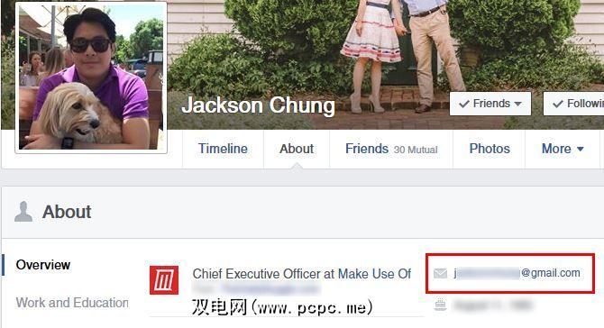 看看此人的社交媒体页面,他们可能会在其中列出其电子邮件地址。很多人在Twitter的个人资料中包含此信息,Facebook在个人资料的关于部分中有一个用于电子邮件地址的位置。也不要忘记LinkedIn。