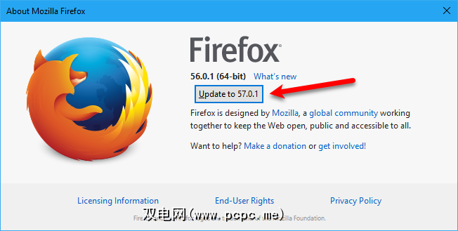 如果您已经在运行Firefox,则可以转到关于Mozilla Firefox 对话框,按照以下说明自动升级到最新版本的Firefox: