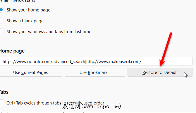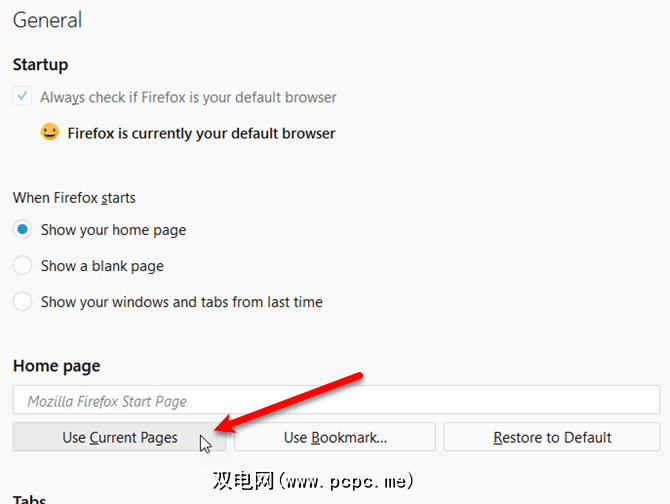 下次单击主页按钮时,主页框中的每个URL在新标签页中打开。当前打开的所有标签都不会受到影响。
