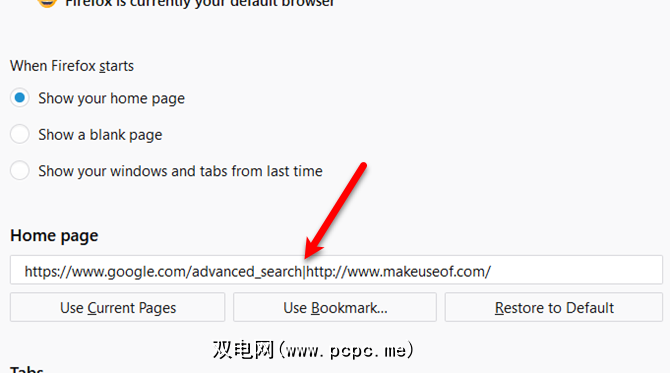 您还可以将多个网页设置为主页。单击主页按钮时,每个页面都会在单独的标签中打开。