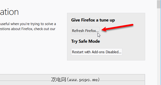 要刷新Firefox,请打开故障排除信息页面使用以下方法之一。