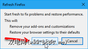 刷新Firefox时,您将丢失诸如附件和主题,工具栏自定义项,添加的搜索引擎,网站权限以及修改的首选项之类的项目。