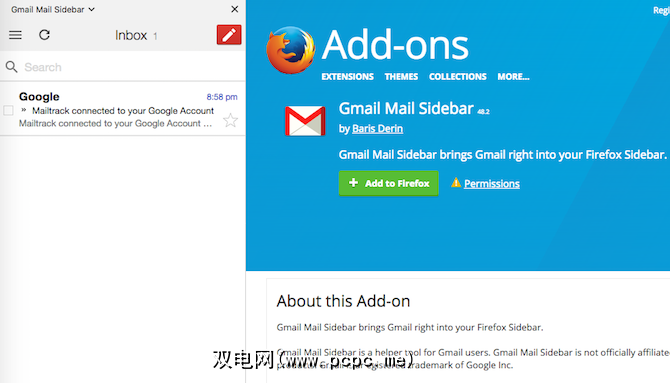 Gmail邮件侧边栏,顾名思义,将Gmail的移动版本放在Firefox侧边栏中。这样,您就可以始终打开收件箱,就像在iPhone或Android手机上使用Gmail应用程序一样使用它。