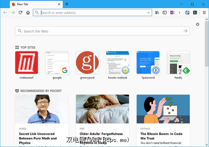 如果您不喜欢Firefox 57 Quantum中经过改进的 New Tab 页面,则可以启用经典的Firefox New Tab 页面,其中包括搜索功能框和比新的“热门网站"部分更大的热门网站。我们将向您展示的方法在本文撰写时可用。但是,不能保证Firefox的“高级设置"页面上的设置仍然可用。