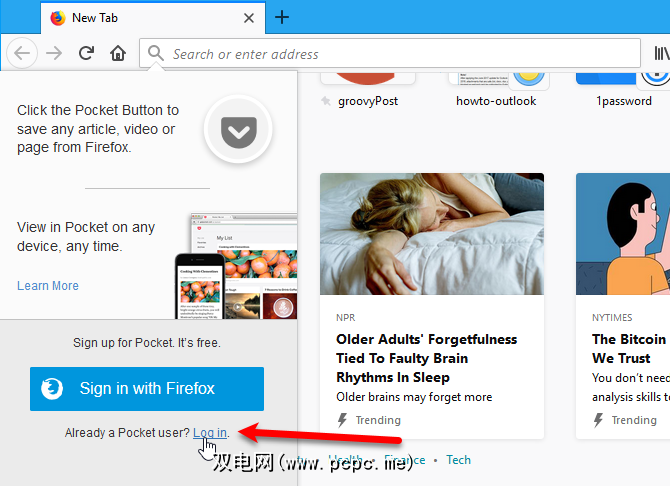 Pocket已内置在Firefox中,并且“新标签" 页面上的“由Pocket推荐" 部分包含提示故事和文章阅读的磁贴。